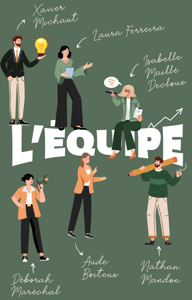 Pour connaître un peu plus en détail chaque membre de l’équipe, cliquez sur leur illustration.